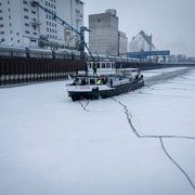 Eine anhaltende Kältewelle lässt erstmals seit dem Jahr 2017 die Wiener Gewässer wieder großflächig zufrieren. Auch im Hafen Wien bilden sich bei anhaltenden Minusgraden innerhalb kurzer Zeit geschlossene Eisflächen. Um den Betrieb in den Hafenbecken aufrechtzuerhalten und Schiffe vor gefährlichem Eisdruck zu schützen, ist der Eisbrecher „MS Eisvogel“ des Hafen Wien, einem Unternehmen der Wien Holding, derzeit regelmäßig im Einsatz und bricht etwa alle zwei Tage das Eis in den Häfen Freudenau, Albern und Lobau.