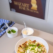 Dass Profikoch Brugger die Pfannen im Mozarthaus Vienna schwenkt und Neuinterpretationen alter Speisen präsentiert, hätte sicher auch Mozart selbst gefallen. Denn der Komponist konsumierte Speis und Trank mit Leidenschaft. Wie Zeitzeugen berichteten "genoss er stets, trank im Übermaß, aber mit sichtlichem Genuss". Fast täglich besuchte er eines der zahlreichen Gasthäuser der Stadt Wien, etwa "Zur Silbernen Schlange", dass sich in der Kärntner Straße befunden hat, wo genauso wie bei fürstlichen Empfängen Menüs mit mehreren, oft raffiniert zusammengestellten Gängen zu bekommen waren.