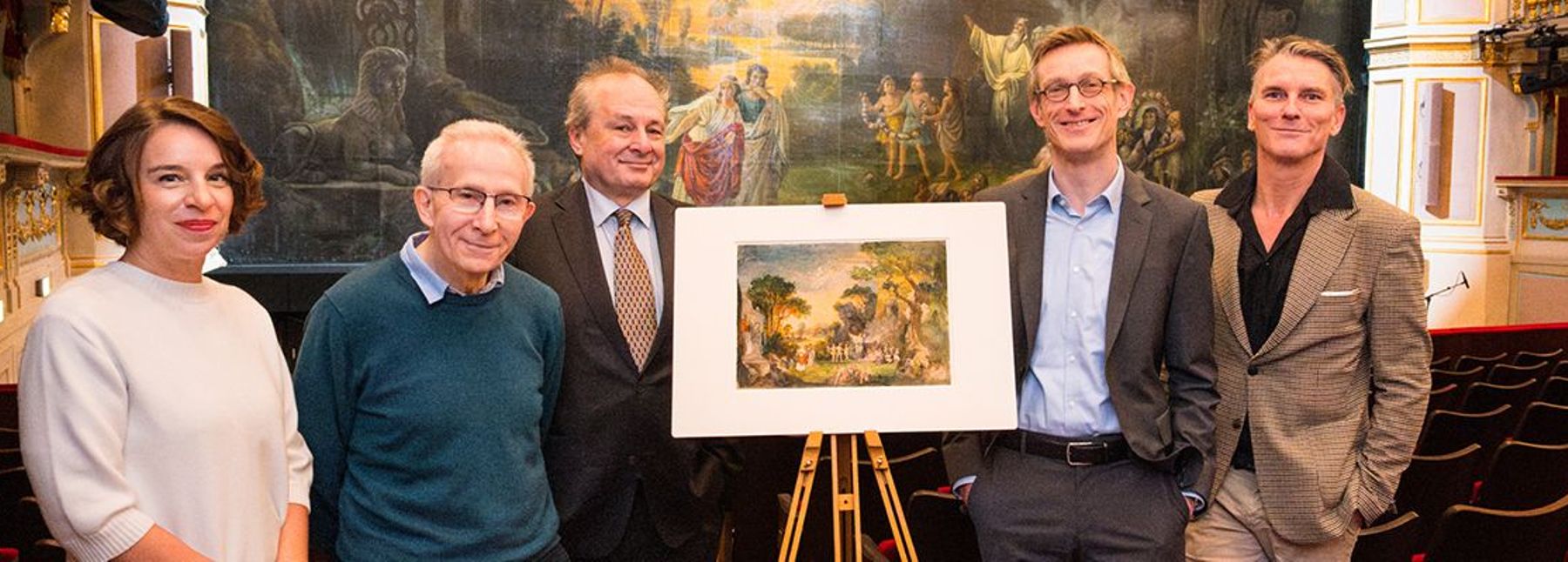 Stefan Herheim, Intendant MusikTheater an der Wien: „Ich bin den Erben nach Luise Simon, der Schwester von Adele Strauss, sehr dankbar, dass Sie dem Aquarell hier im Theater an der Wien ein neues Zuhause geben möchten – an dem Ort, wo so viele Verbindungen dieser Familien wieder zusammenfinden.“