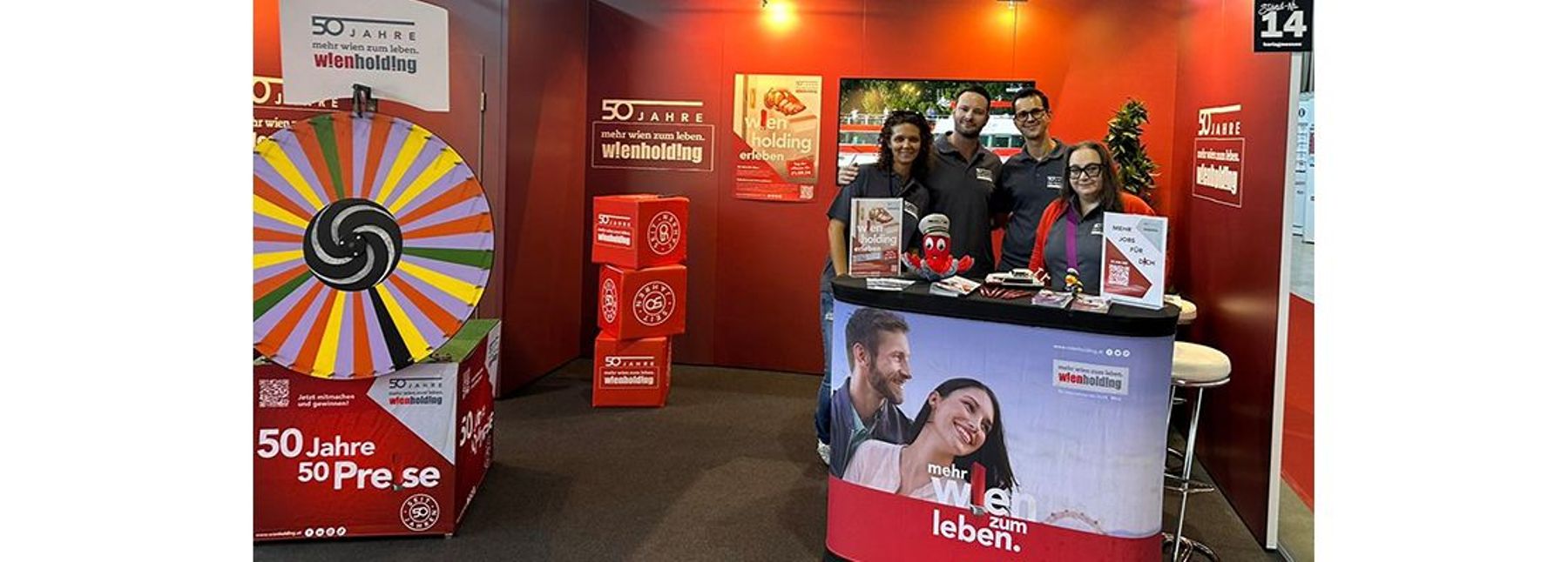 Am 13. und 14. September 2025 wird die Wien Holding gemeinsam mit ihren Unternehmen – der Hafen Wien GmbH, der KunstHausWien GmbH, der Therme Wien GmbH & Co KG sowie der Vereinigten Bühnen Wien GmbH – bei der vierten Jobmesse Austria in der Marx Halle vertreten sein und interessierte Besucher*innen über die vielfältigen Jobs, Lehrausbildungen und Karrierechancen im städtischen Konzern informieren.