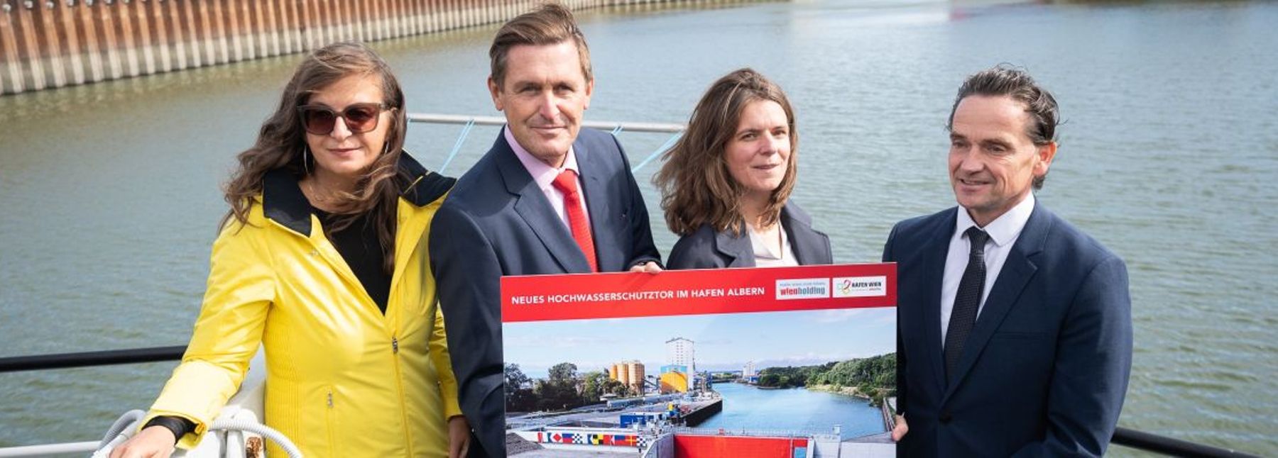 „Mit einer Unterstützung von 50% zum neuen Hafentor leistet das Klimaschutzministerium einen Beitrag zum modernen Hochwasserschutz des Hafens und zur Attraktivität des Systems Güterschifffahrt. Die Verlagerung auf den energieeffizienten Verkehrsträger Schiff ist eines der Ziele des Mobilitätsmasterplan 2030 und der trimodale Hafen Wien wird durch die gemeinsame Investition um ein weiteres Stück attraktiver und sicherer,“ so die Vertreterin des Klimaschutzministeriums Sektionschefin Vera Hofbauer.
