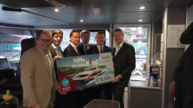 Der Twin City Liner der Central Danube, ein gemeinsames Unternehmen der Wien Holding und der Raiffeisenlandesbank NÖ-Wien, unterstützt UNICEF Österreich seit 2018 jährlich mit einer Spende in Höhe von 10.000 Euro.