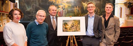 Bei dem Aquarell handelt es sich um einen Entwurf für die künstlerische Gestaltung des Vorhangs im Theater an der Wien der Vereinigten Bühnen Wien, einem Unternehmen der Wien Holding, der restituiert wurde.
